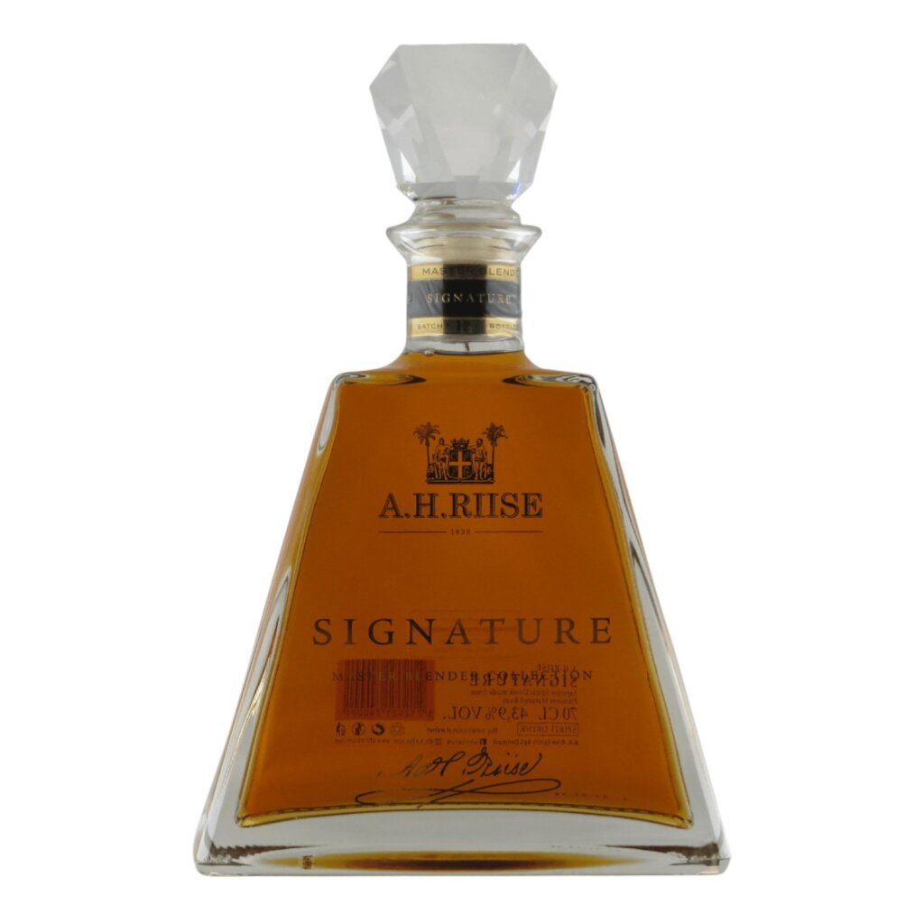 Der A.H. Riise Signature Edition Rum ist das Aushängeschild der renommierten A.H. Riise-Rumlinie. Mit einem Alkoholgehalt von 43,9% und einem aufwendig komponierten Blend aus seltenen, lang gereiften Rumfässern, richtet sich dieser Rum an Kenner, die das Außergewöhnliche suchen.Optik – Eleganz in jeder Facette