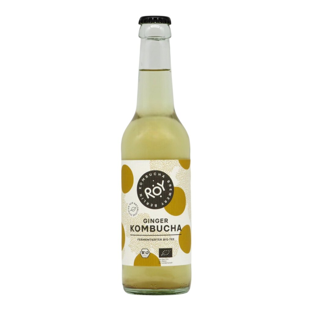 ROY Ginger Kombucha BIO Organic ist dein erfrischender Daily Drink, wenn du Lust auf etwas Besonderes hast. In unserer Berliner Brauerei handgefertigt, vereint er fermentierten Schwarz- und Grüntee mit feinem Ingwer zu einer lebendigen, modernen Alternative zu herkömmlichen Softdrinks.